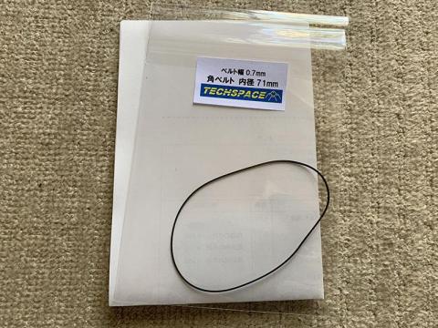 ところが先日、Amazonマーケットプレイスで、テープデッキ用の駆動ベルトを取り扱っている業者があることに気付き、そこの商品を調べていると、ユーザーレビューにWM-WE01の修理に使った方のコメントが載っていることに気付きました。買った商品も書かれていましたので、それと同じものであれば使えるだろうと考え、早速取り寄せてみました。
