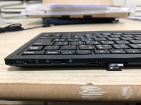 奥側にBluetooth、USB無線の切り替え、Windows、Androidの切り替え、充電用Type-C、