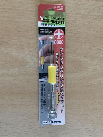 精密機器用のドライバーセットを買おうかとも思ったのですが、+0000番が入ったセットは店頭在庫になかったため、必然的にこの製品を選ぶことになりました。