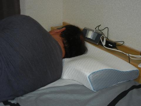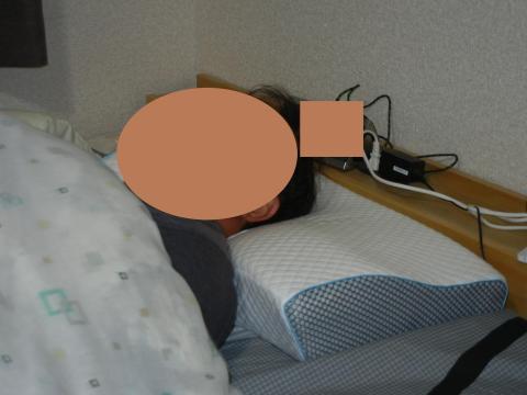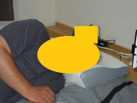 では、実際に寝てる状態の写真です。・・・モデルがオジサンでごめんなさい。