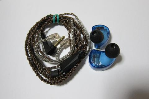 流石に片耳8BAも入っていると,それなりの大きさのハウジングが必要になり,一般的なユニバーサルIEM形状になります.ハウジングは樹脂で,フェースプレートが金属という構成.クリアブルーのハウジングなので,中のBAが透けて見えます.