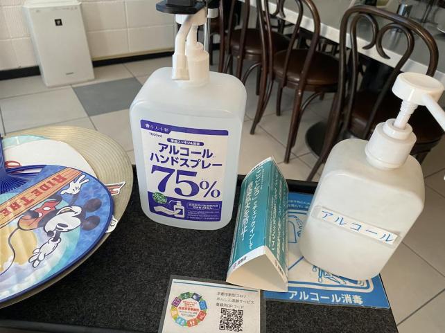 コロナウイルス感染症対策が求められている店舗では、入退出店時にアルコールを使った