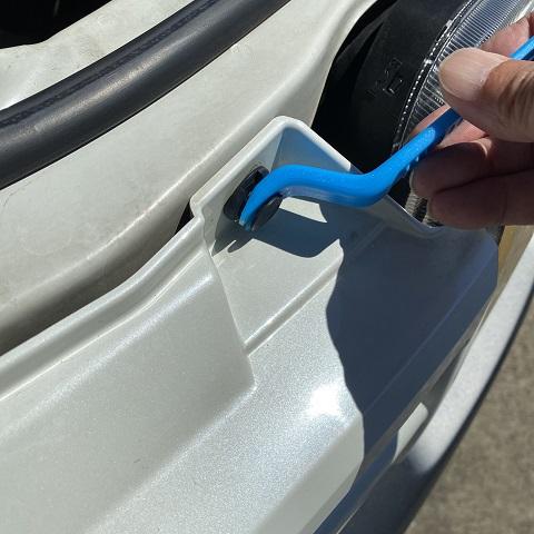バンパークリップ?リベットピン?はプラスチックなので10年以上経つとカチカチになっています。無理に力を加えると割れてしまうので取り換え用で今回20個ほど新しい物を準備しました。