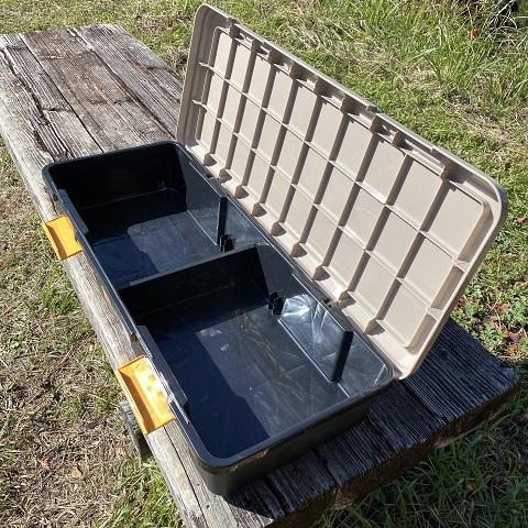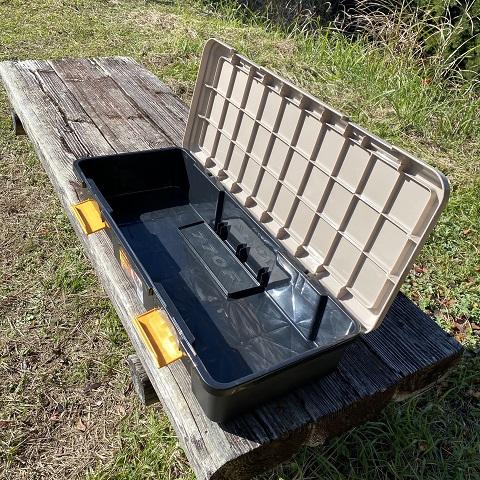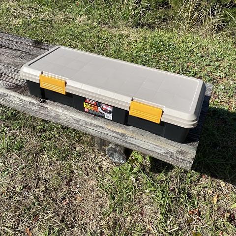 先日レビューした折りたたみテーブルやら車内の小物が入って整理できる収納ボックスを購入してみました。横ながーいボックスです。