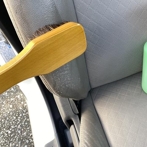 3枚目のウエスの出番です。泡状のままシートに塗り塗りしてあげます。付着防止の保護コーティングの他に、革がしっとりしてきて柔らかく触り心地が良くなりました。