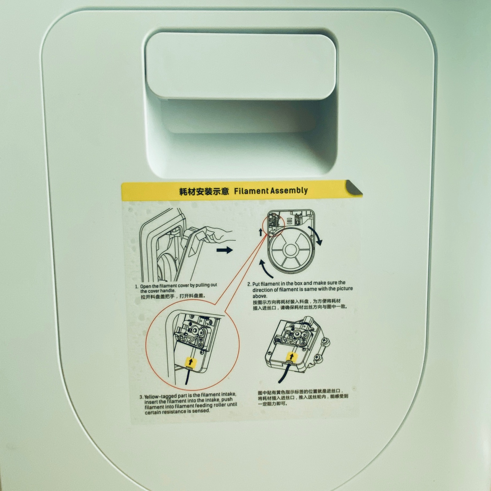 蓋をしめます。純正フィラメントは本体内に収納できるのでスマートですね。