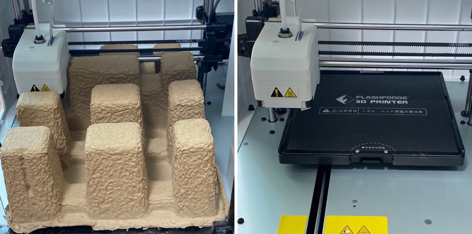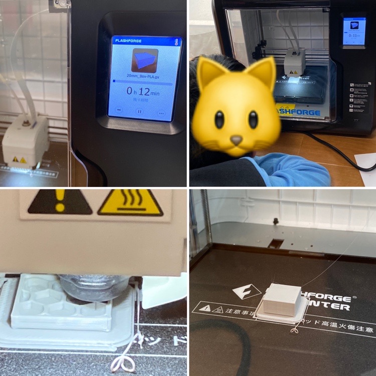 サンプルの印刷(プリンターに入っている2㎝×2㎝×1㎝の直方体)