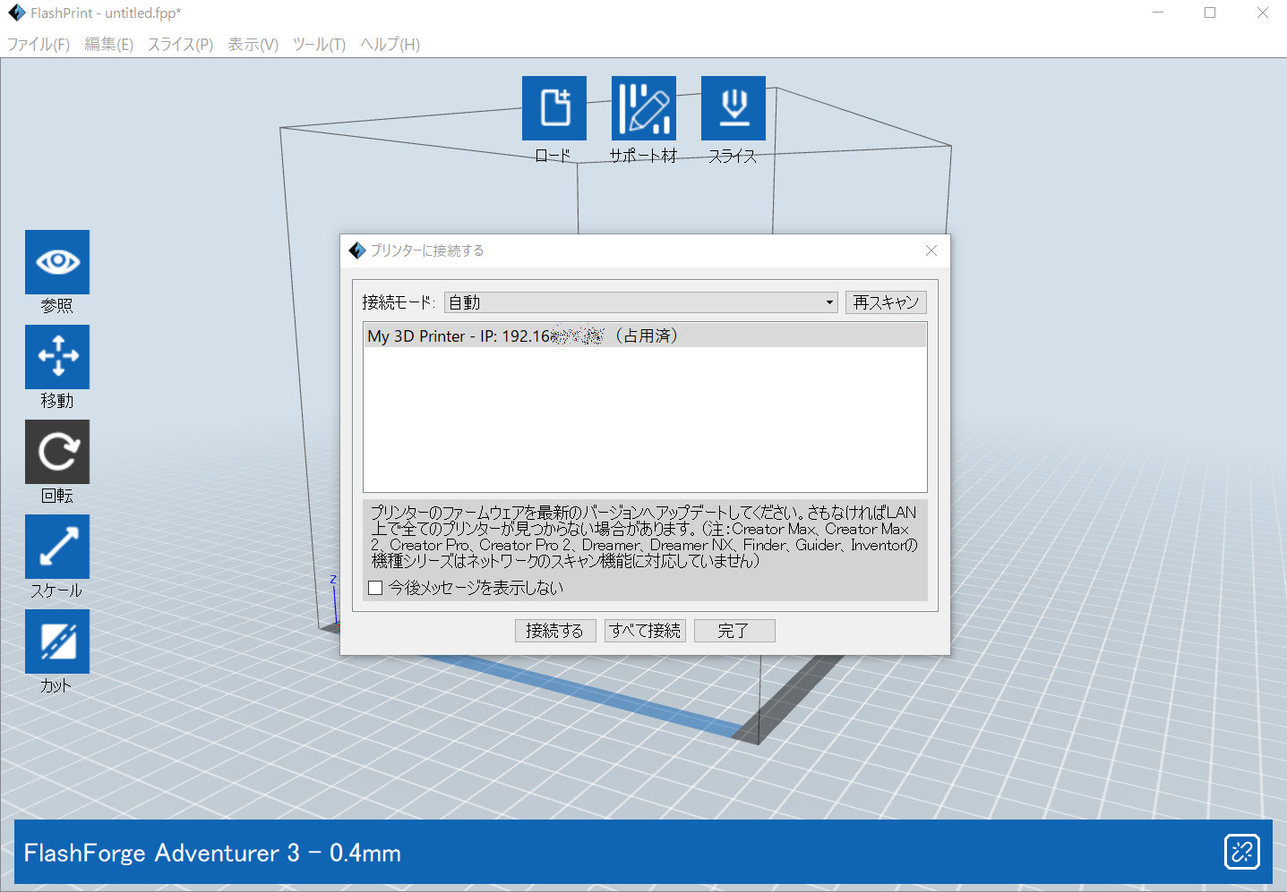 ネットでいろいろ調べたたり、Twitter経由3Dプリンターを扱っている方に聞いたりしたところ、Adventurer3がほとんどの方が使われていた上にオススメされていたのでこの機種に決めました。