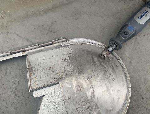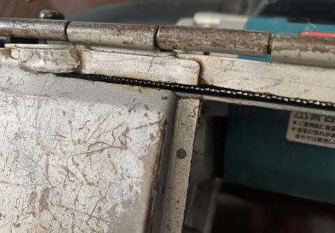 今回は車の板金をするのではなく、バンドソーの裏の蓋部分の補修をします