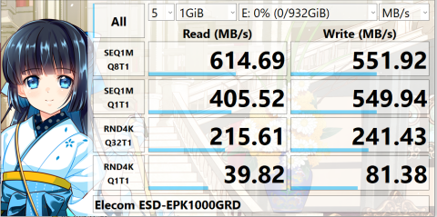 こちらはUSB3.1Gen1対応なのですが、こちらでもUSB3.1Gen1以上の速度が出ました。