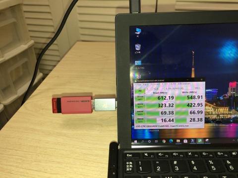 Gen1対応でも速度が出るのかと思い直差しの変換コネクタも試しましたが、こちらでもUSB3.1Gen1以上の速度が出ました。