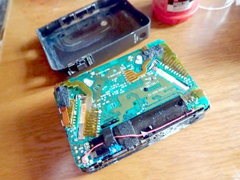 あまり時間が取れませんでしたが、アルカリ電池の電解液でパターンがボロボロになっている部分の清掃をしました。