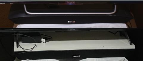 設定で、壁寄せ、テーブルトップの二種類のサウンド設定には出来ますが、私の設置環境では壁寄せを使うには壁からの距離が離れている所為か、ただ、後ろに音が向かっているだけに感じましたし、テーブルトップ設定では棚板に載っているだけなので良い音にはなり難く感じました。