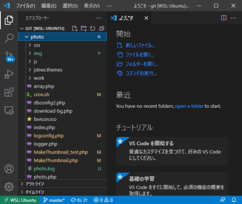 WSL 上で clone(コピー)されたものが配置されており、VS Code で参照すると Git の操作も可能になる優れものです。
