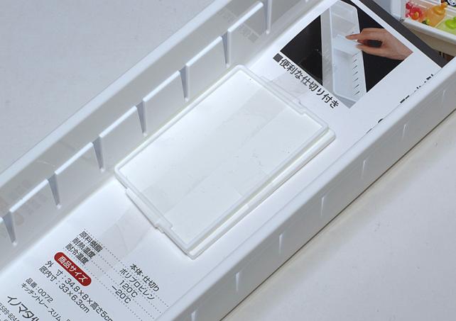 仕切り板は2枚付属しており、サイドのスリッドの位置で分割できるので入れる物に合わせてサイズ調整が可能です