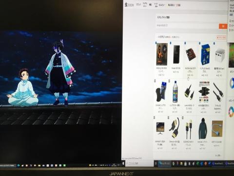 ただし、左の鬼滅の刃のように中央にまとまって表示されます。