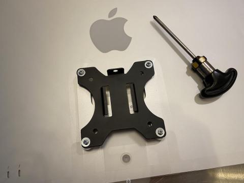 新型iMacはとても薄いので、製品に付属しているプラスチックワッシャーを併用してます。
