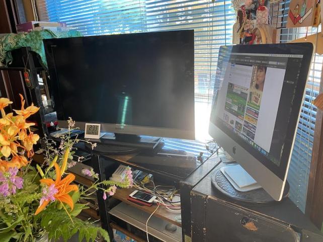 6年ほど愛用したiMac 横に32インチのブラビアがあります