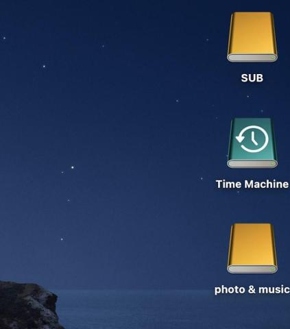 うちの設置環境に限ってですが、iMacの右下に端子群があり キーボードの下に2台のHDDがある