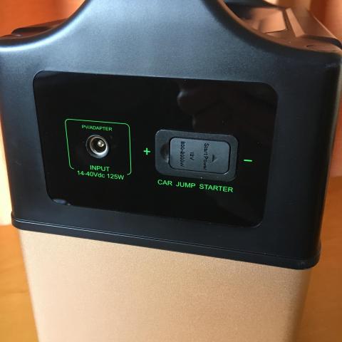 充電用入力ポート(メス)と車用ジャンプブースターポート