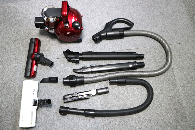 「天井ブラシ」と、特に「電動布団ブラシ」が使いたくて、VC-SG910Xを選んだ部分があるので、それも助かってます。花粉の季節にマットレスを外干しすると、めっちゃ目が痒くなるんですよね。その時に布団を吸いたい。…吸えます。