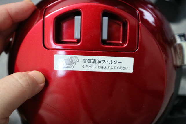 本体の右側側面には、排気清浄フィルターの取り外し位置が。