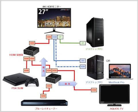 今回は、デスクトップPCのDVIからモニターのHDMIポートに接続します。