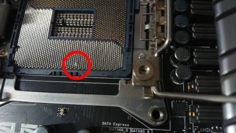 なおこちらはX99-Deluxe ⅡのマザーボードがCPUを認識しなくなり、CPUクーラーとCPUを外すとマザーボードのCPUのピンが曲がっていました。