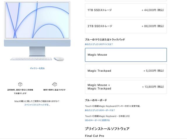 注文画面で、マジックトラックパッドとタッチID付きキーボードを選択して、それがそのまま