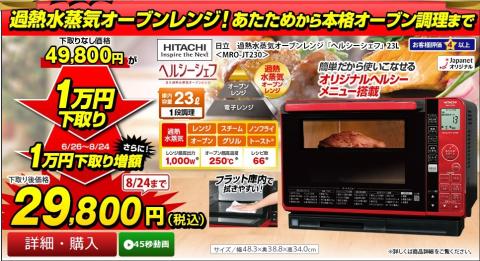 日立 加熱水蒸気オーブンレンジ「ヘルシーシェフ」23L MRO-JT230