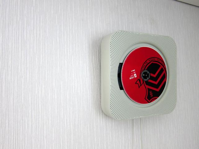 シンプルな機械がよかったので、必然的に無印良品の壁掛け CDプレーヤーに。