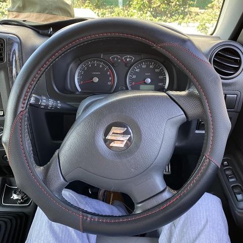 生意気にジムニーも革ハンドルなんです。