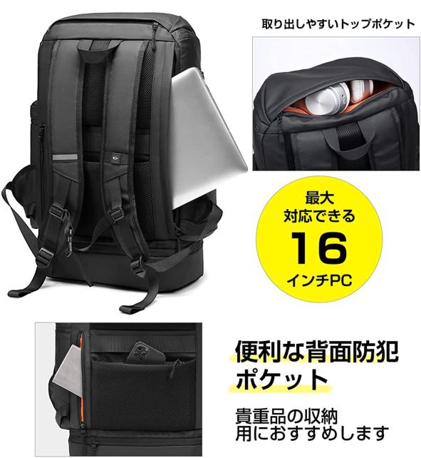 このバックは、メイン収納部分に充分な収容能力があるうえに、16型PCも収納できるので、ちょっとした出張や旅行でも使えると思います。