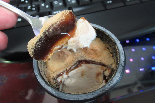 きなこアイス・黒蜜・やわもち・きなこの4層構造。