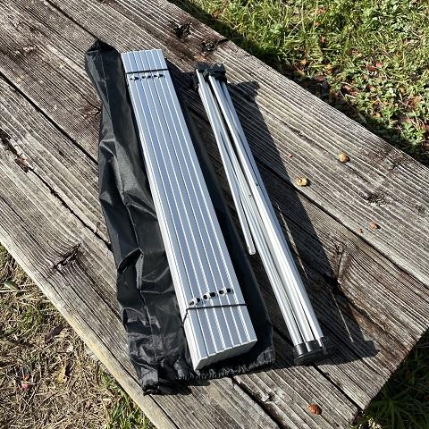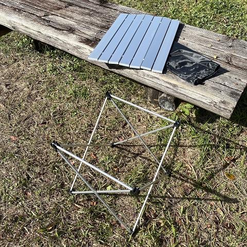 引っ張り出せば足と天板が入っています。アルミ製なので錆びないし非常に軽いのもGOOD