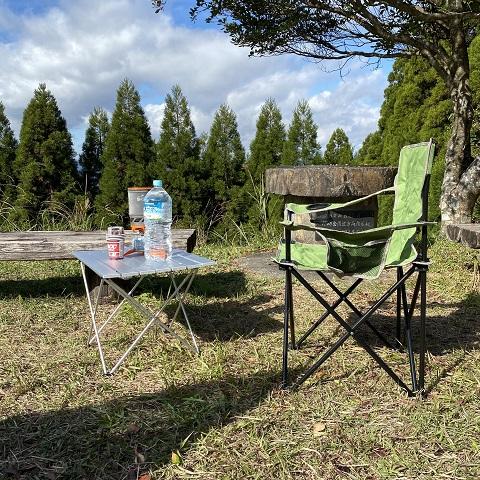 高さ30cmのテーブルより一回り大きいので必要な物は十分乗せられるけど、足が細いので芝生の上などではちょっと心配です。