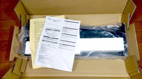 なお、輸送中の箱潰れ防止用に机上ラック裏に発泡スチロールの棒で支えがされています。