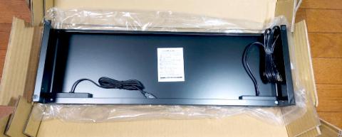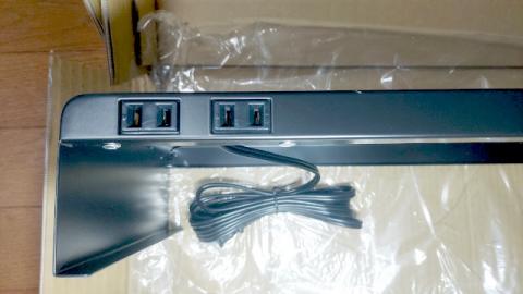 コンセントとUSBポート付きと言うことで、下の写真で右下側にコンセントケーブル、左下側にUSBケーブルがラック本体から生えているのが見えます。