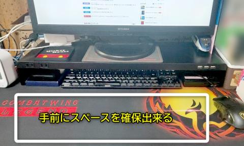 元々かなり下向き加減の目線で使用していたので、8cm高くなる事で、目線がモニタの上端辺りに来る事に。