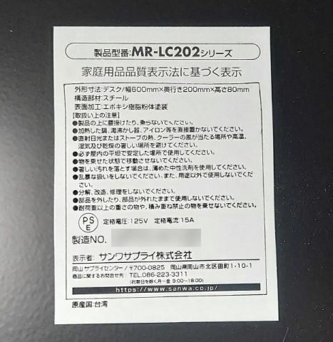 細かい点だと、MR-LC202BKNの場合、机上ラック自体の足になる部分が左右の板1枚なので、机上ラックの横幅分ほぼ全てが、ラック下では収納可能エリアになってる点が大きいですね。