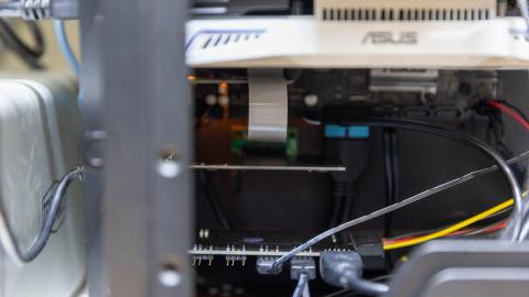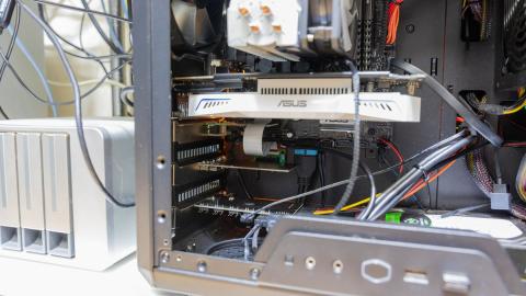 ここでマザー(H310)がMicro ATXのためPCIeスロット数に制約があり、PCIex3x16が1つ、PCIex3x1が2つしかありません。しかも(不要ではあるのですが)GPUを使用しているためにPCIex1がふさがれています。もう一つは2.5GbeのNICが必須のため(キャプチャーデータを10GbeNASに保存するため)、最終的にはライザーケーブルの使用を検討しました。
