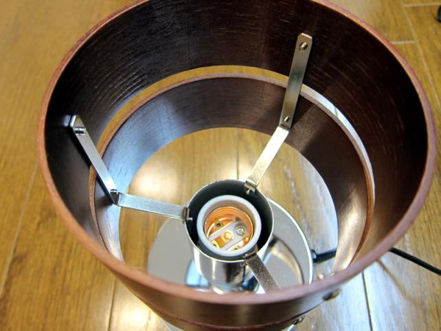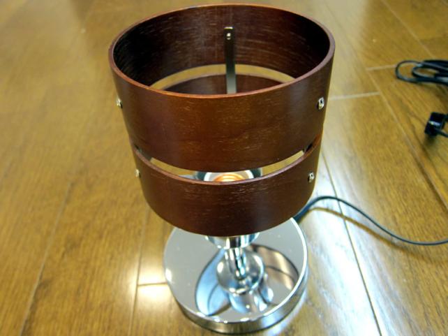 想像していたよりサイズが大きめで邪魔になりそうですが、木枠のシェードがうまいぐあいに電球を隠すので、間接照明だと分かりづらくさせているところはいいですね。