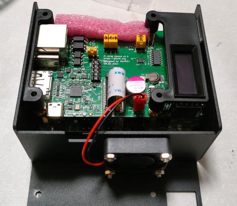 PiKVMを上から入れる。フラットケーブルはボードの隙間に通す。