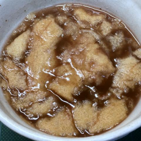 もっちりとした食感の牛皮が香ばしくて、餅の様に「トロリ」として美味しいです。