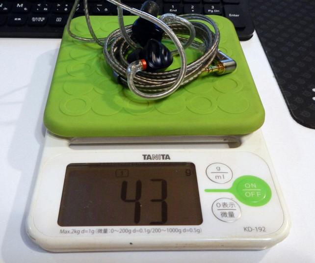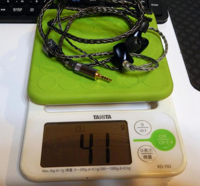 純正ケーブルで実測約43グラム、バランスケーブルに変更し約41グラム