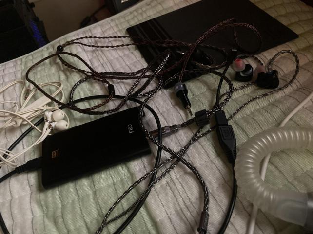 手持ちのイヤホンと聴き比べをしていてケーブルでごちゃごちゃ