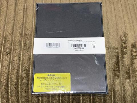 箱に構成が書かれたシールが貼付されていますので、このN6iiが本来E02のセットであったことが判ります。なお、E02はESS ES9038Q2Mを2基搭載して、4.4mmバランス出力のみに対応するという少々尖った仕様のマザーボードです。