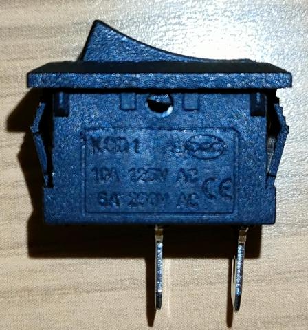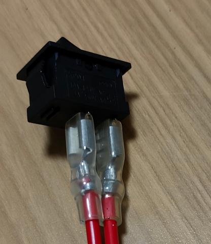 平型端子187型オスが2ピン出ています。OFF時には通電せず、ON時に通電する単純なスイッチです。
