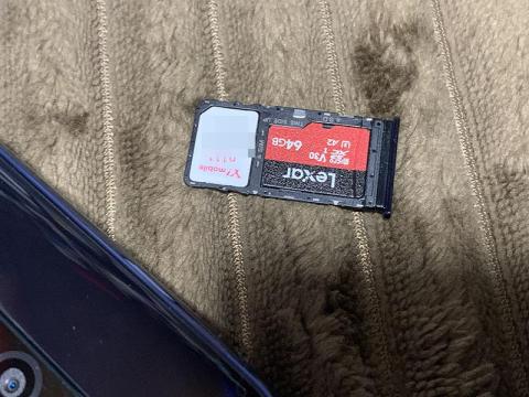 今回はXPERIA 8で使っていたY!mobileのSIM(5Gまでサポート)をそのまま使います。XPERIA 8はメモリーカードすら挿さず、ほぼ完全にルーターとして使っていたのですが、今回は一応最低限のメモリーカードも用意しています。