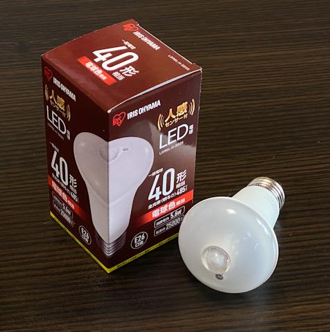アイリスオーヤマ製の人感センサーが付いたLED電球です。
